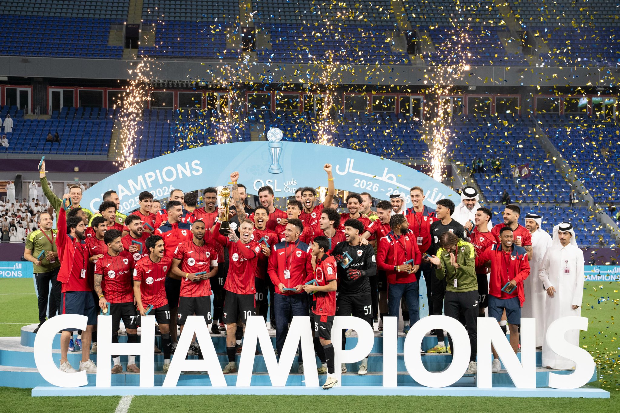 توج نادي الريان بطلاً لبطولة “كأس QSL” للموسم 2025-2026، بعد تحقيقه فوزاً مستحقاً على نادي معيذر بنتيجة (2-0) في المباراة النهائية المثيرة التي استضافها استاد “974” المونديالي، ليضيف الرهيب لقباً جديداً لخزائنه ويسعد جماهيره الوفية.