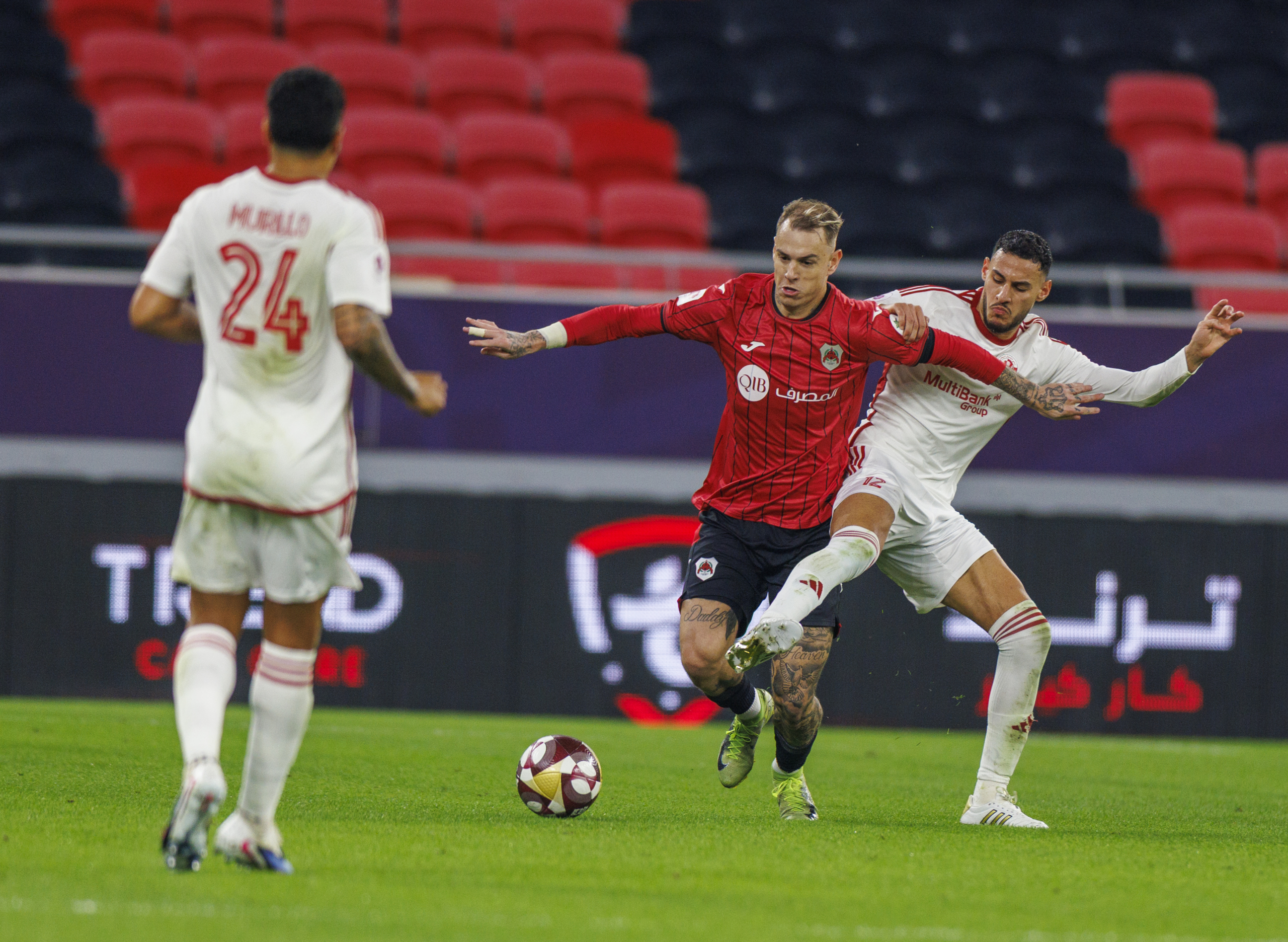 الريان لعب بتشكيل مكون من “محمود أبوندى في حراسة المرمى، حازم أحمد، محمد صالح، اندريه أمارو، وجاسم جابر في الدفاع، غريغوري، عبدالعزيز حاتم، وروجر غيديس في الوسط، ويسلي، غابريل بيريرا، وردريغو مورينو في الهجوم.