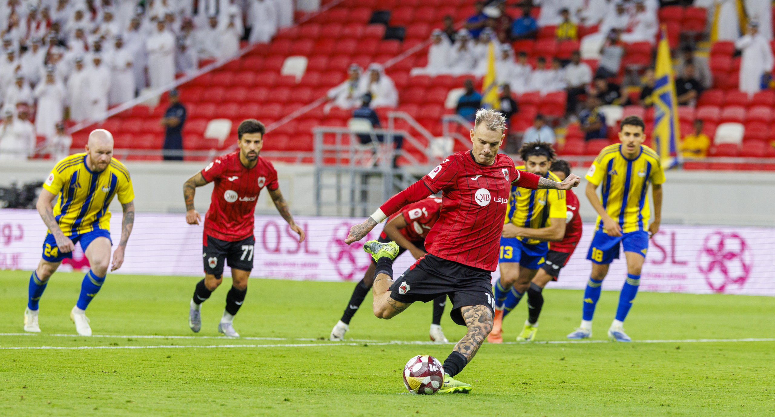 Al Rayyan’s lineup consisted of Mahmoud Abunada in goal; Ahmed Al Minhali, Mohammed Saleh, André Amaro, and Abdullah Yusuf in defense; Grégory, Jassim Jaber, and Roger Guedes in midfield; and Rodrigo Moreno, Wesley, and Mitrović in attack.